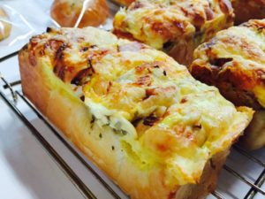 型の大きさを変えてバタートップ、ベーコンオニオンロール、大型レーズンパンにしました