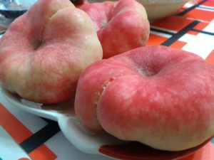平たい桃 パキっと割って食べられるので面白い 甘みが強くておいしい