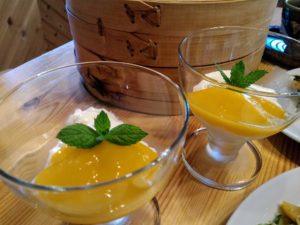 杏仁風プリン マンゴーソース