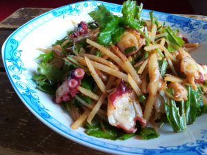 明石タコのサラダ 豆板醤ソース 明石産一本釣り!