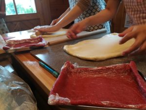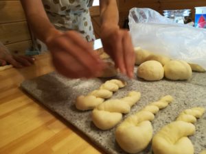 本日は、ベテラン上級2名さま ピタパンと手作り苺シートの折込パンを同時進行~