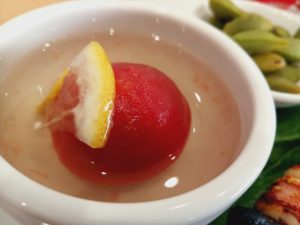 小鉢はトマトのシロップ漬けと糟卤に漬けた枝豆 好評♪