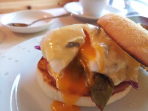 試食タイムはエッグベネディクトで。